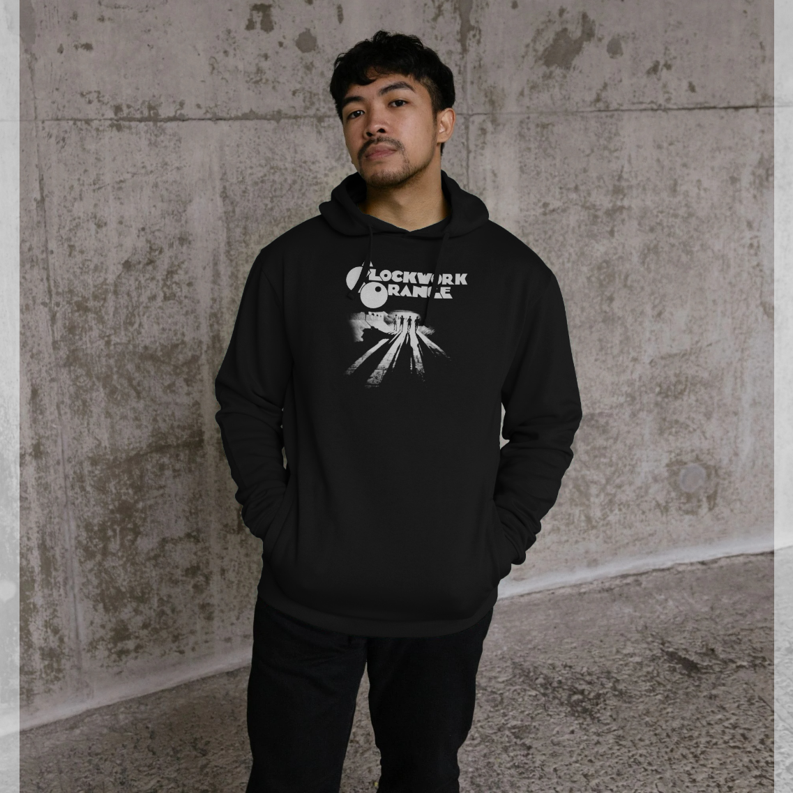 Our OFFICIAL A Clockwork Orange Silhouette Unisex Hoodie based on the popular film features a printed design on the front. This quality garment is manufactured officially under license by Park London on behalf of A Clockwork Orange.