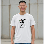 Our OFFICIAL Banksy Love Is In The Air White T-Shirt based on the popular art collections features a printed design on the front. This quality garment is manufactured officially under license by Park London on behalf of APOH.