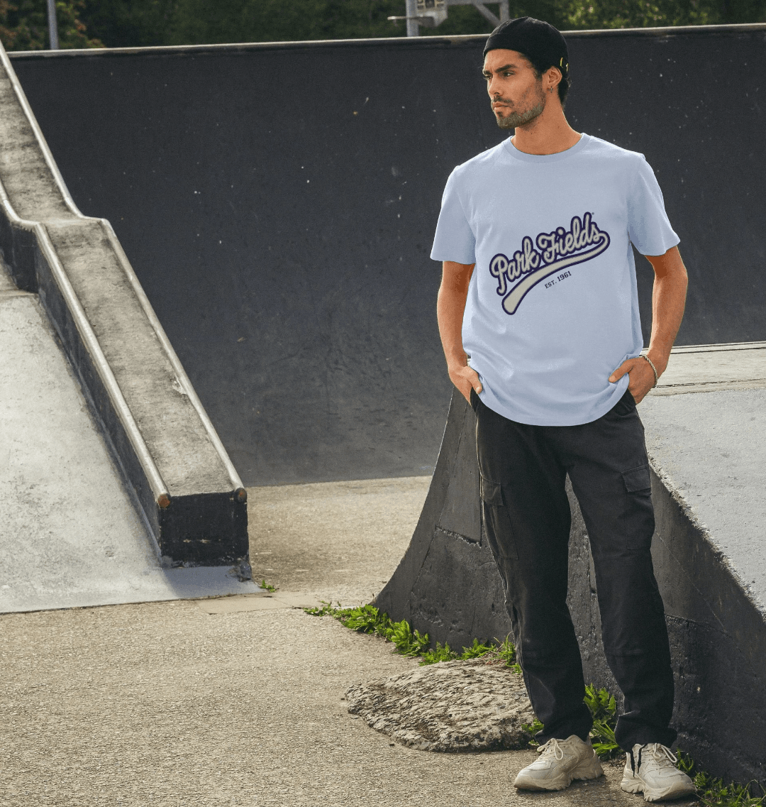 Our OFFICIAL Forty Five Unisex T-Shirt - Sky based on the popular sports brand features a printed design on the front. This quality garment is manufactured officially under license by Park Fields on behalf of Park Fields.