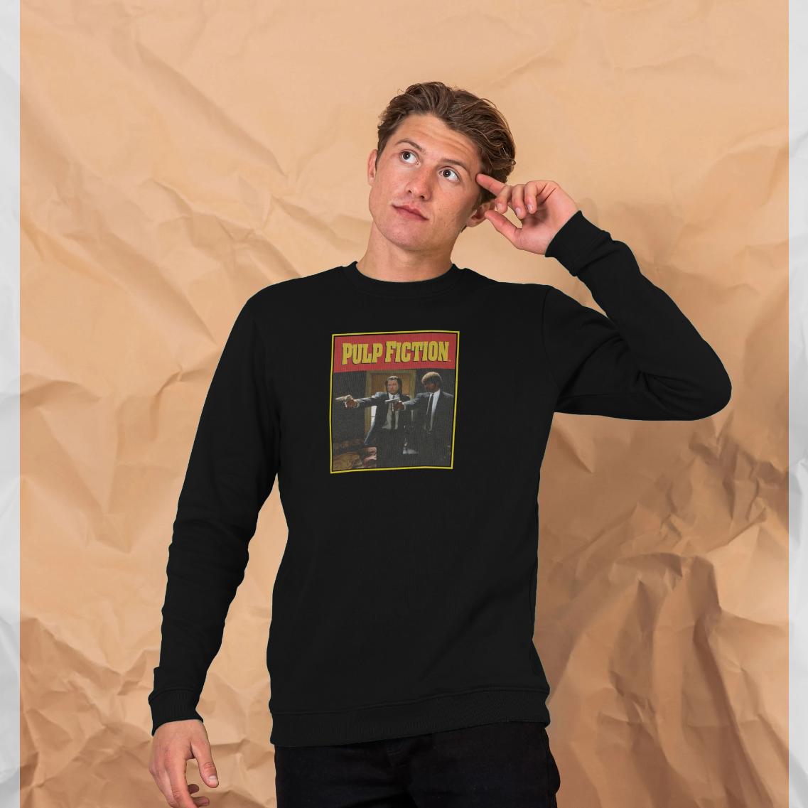 Our OFFICIAL Pulp Fiction Jules Unisex Sweatshirt based on the popular film features a printed design on the front. This quality garment is manufactured officially under license by Park London on behalf of Pulp Fiction.