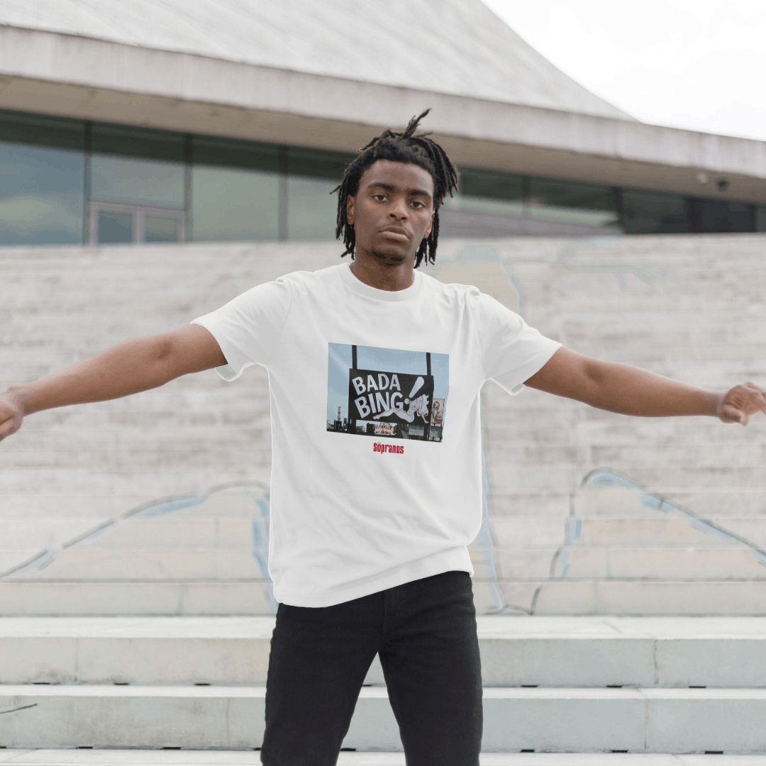 Our OFFICIAL The Sopranos Bada Bing Club White T-Shirt based on the popular TV series features a printed design on the front. This quality garment is manufactured officially under license by Park London on behalf of The Sopranos.