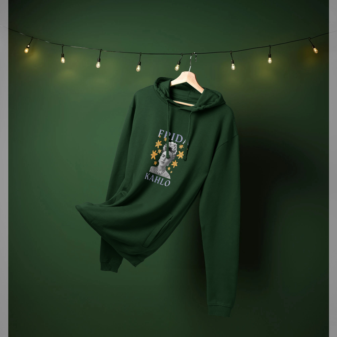 Our OFFICIAL Frida Kahlo Star Graphic Bottle Green Hoodie based on the popular art collections features a printed design on the front. This quality garment is manufactured officially under license by Park London on behalf of Frida Kahlo.