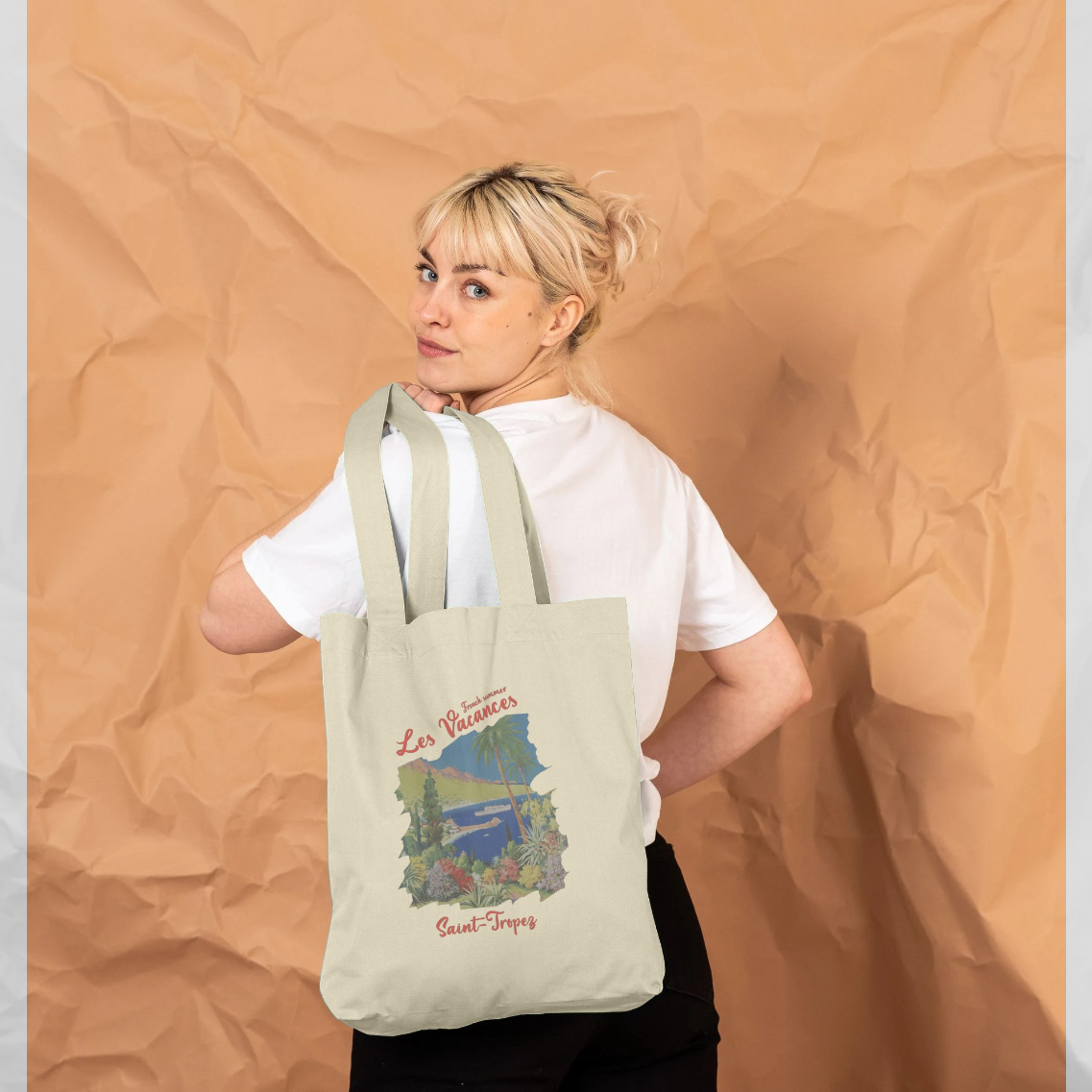 Saint Tropez Vacances Graphic Print Natural Tote Bag