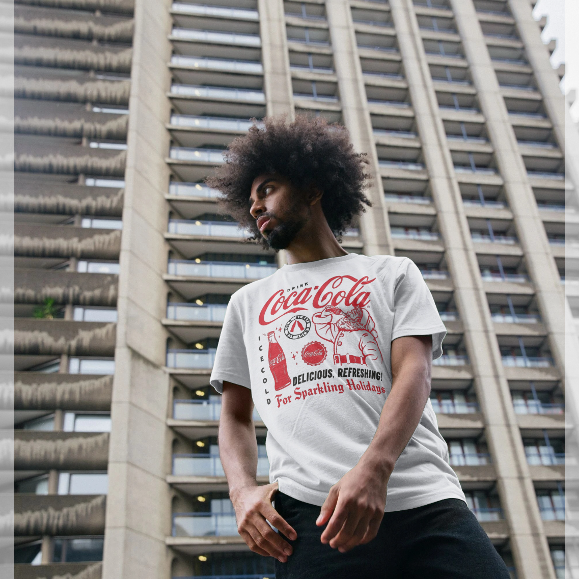 Our OFFICIAL Coca Cola Santa Bottle White T-Shirt based on the popular Coca Cola brand features a printed design on the front. This quality garment is manufactured officially under license by Park London on behalf of Coca Cola.