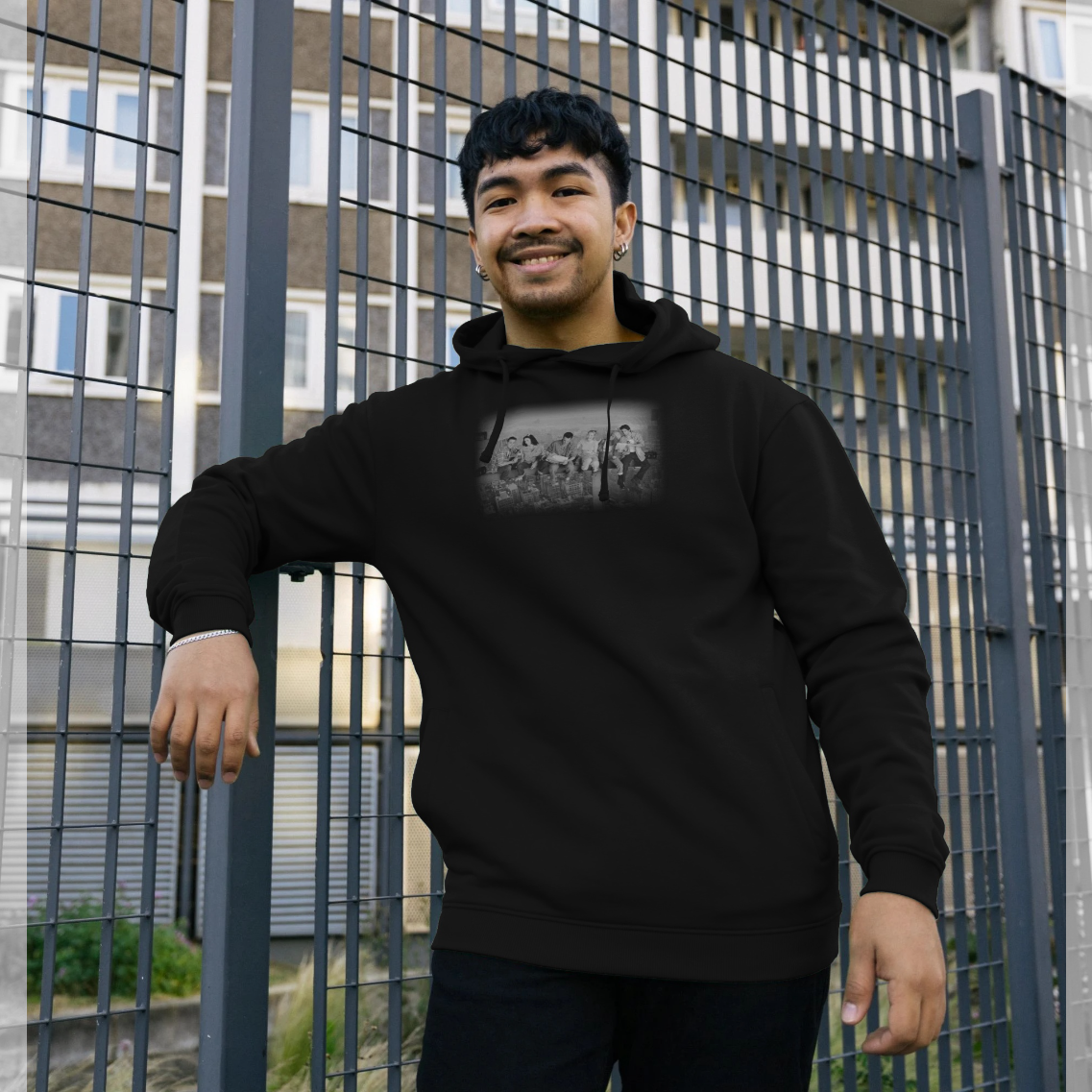 Our OFFICIAL Friends Official Lunch Atop A Skyscraper Black Graphic Hoodie based on the popular TV series features a printed design on the front. This quality garment is manufactured officially under license by Park London on behalf of Friends.