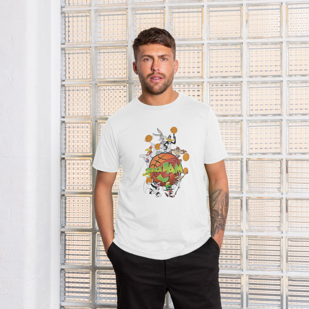 Celebrating the iconic Tune Squad and beloved Looney Tunes characters, this T-shirt features a standout front print design. Made for comfort and durability, this premium garment is officially produced under license by Park London on behalf of Space Jam.