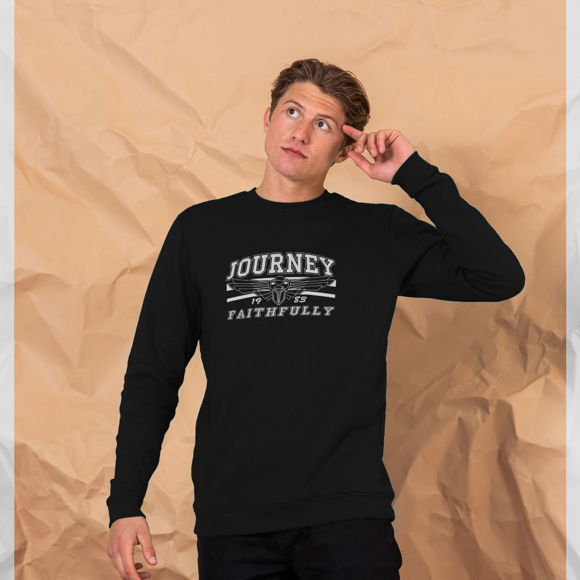 Our OFFICIAL Journey Rock Band Faithfully Graphic Black Sweatshirt based on the popular Music band features a printed design on the front. This quality garment is manufactured officially under license by Park London on behalf of Journey.