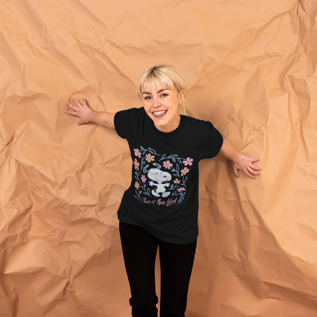 Peanuts Snoopy Good Life Spring Flowers Retro Black T-Shirt