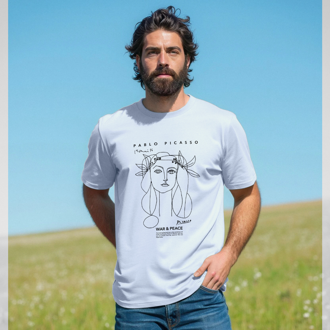 Our OFFICIAL Picasso War & Peace Light Blue T-Shirt based on the popular art collections features a printed design on the front. This quality garment is manufactured officially under license by Park London on behalf of APOH.