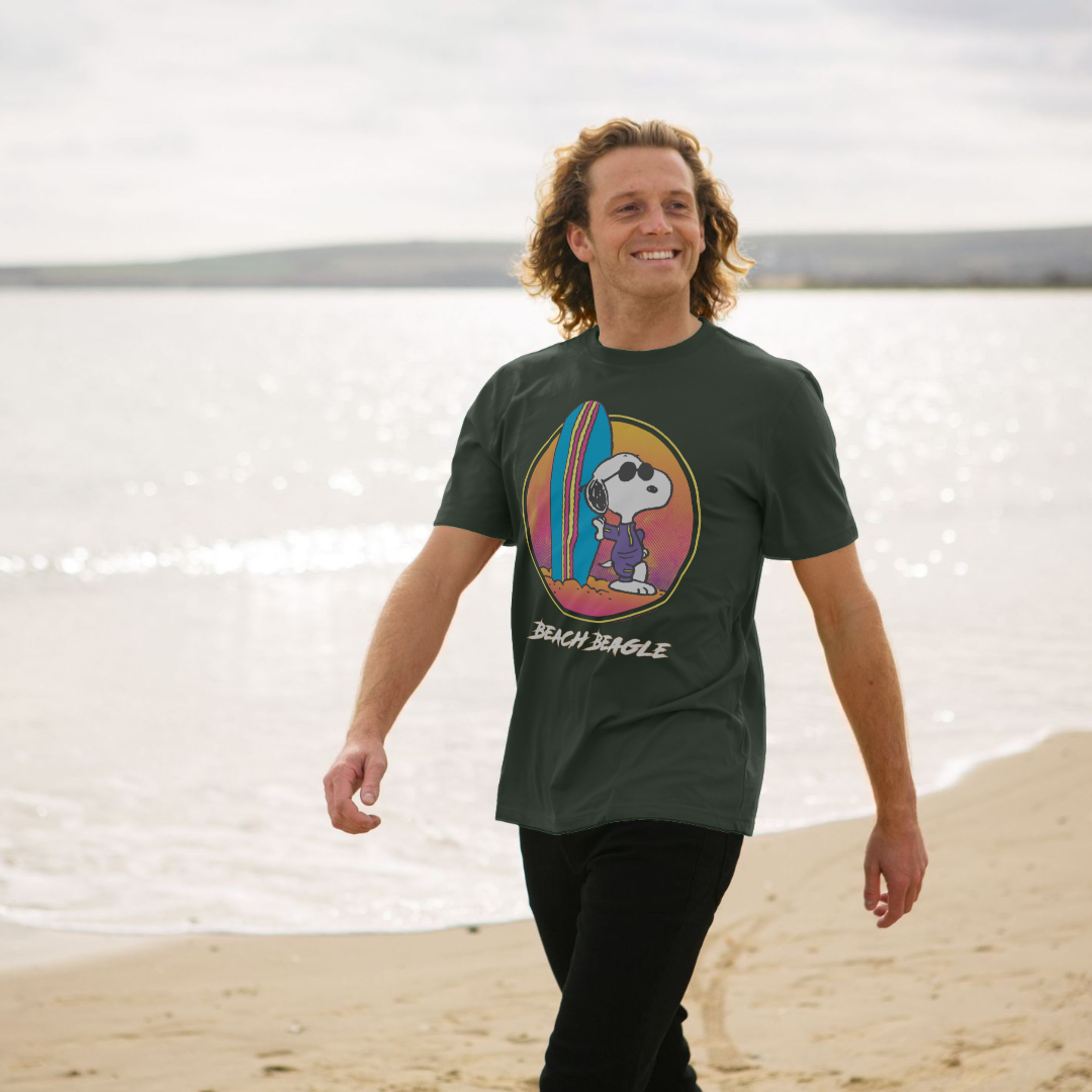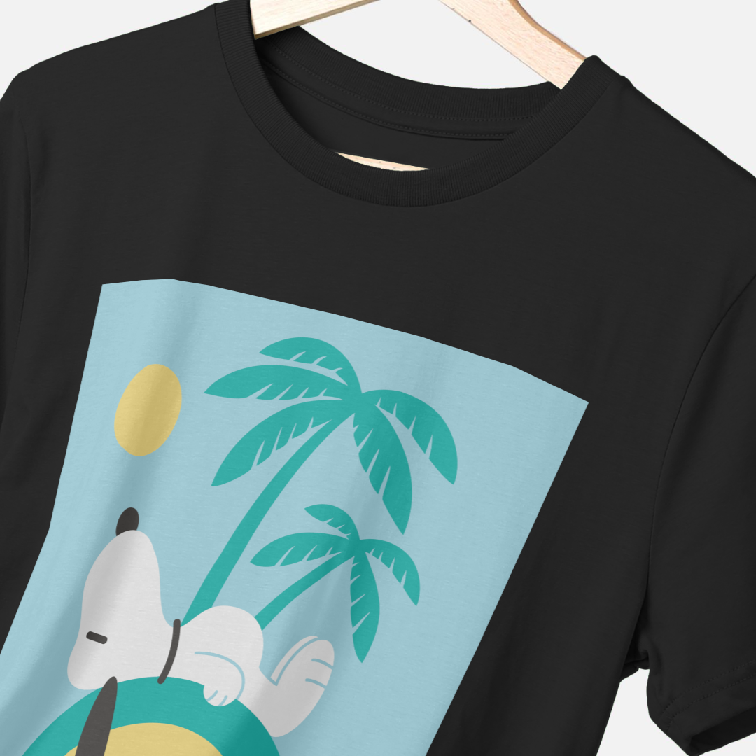 Peanuts Snoopy Beach Bum Retro Summer Holiday Vintage Black T-Shirt