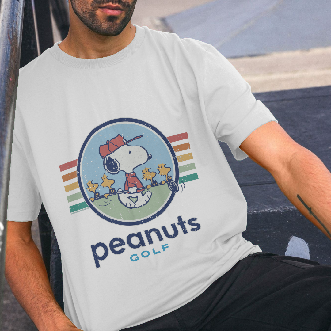 Peanuts Vintage Summer Snoopy Woodstock Golf Swing Retro White T-Shirt