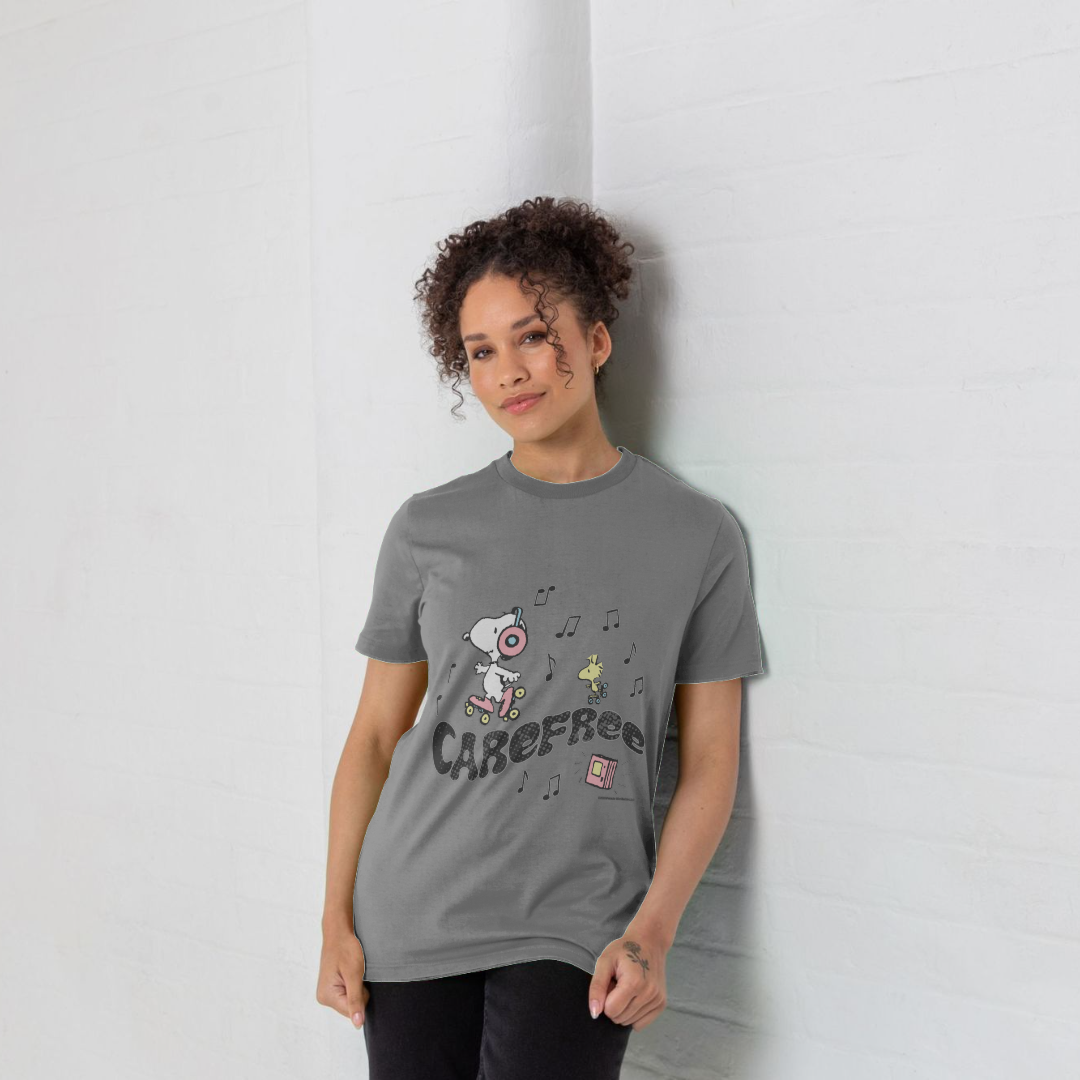 Peanuts Snoopy Woodstock Carefree Roller Skating 90s Vibes Athletic Grey T-Shirt