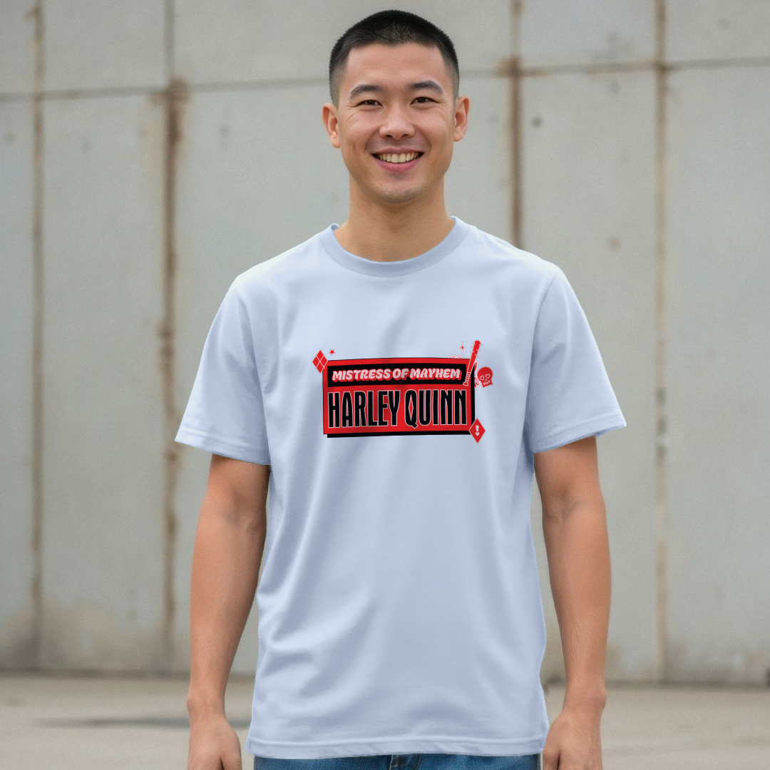 DC Harley Quinn Mistress of Mayhem Villain Graphic Sky Blue T- Shirt