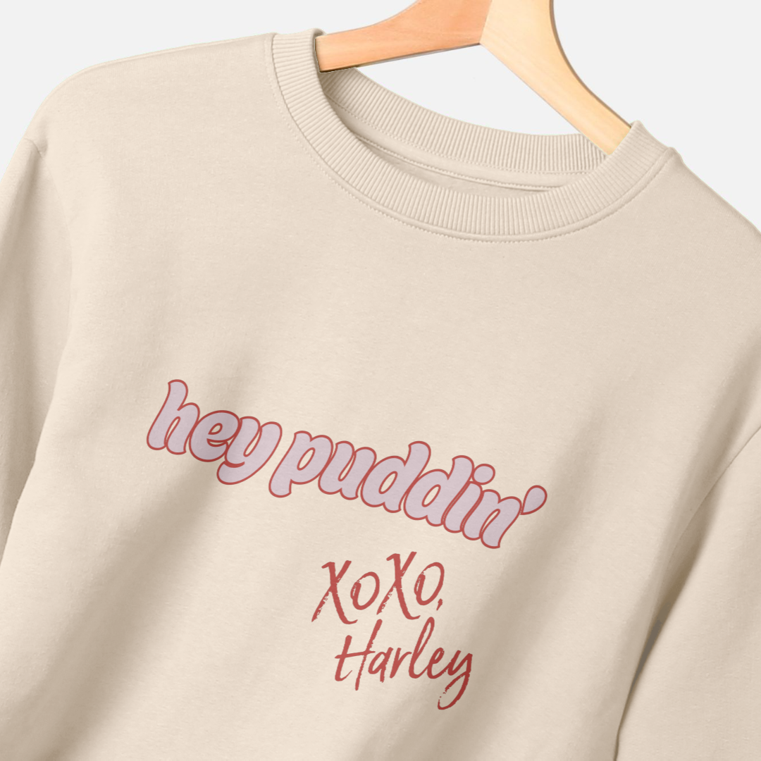DC Harley Quinn Hey Puddin Love Quote Graphic Oat Sweatshirt
