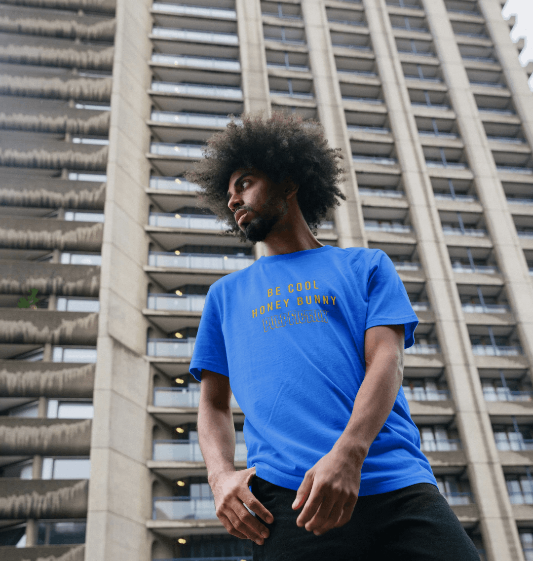 Our OFFICIAL Pulp Fiction Honey Bunny Royal Blue Unisex T-Shirt based on the popular film features a printed design on the front. This quality garment is manufactured officially under license by Park London on behalf of Pulp Fiction.
