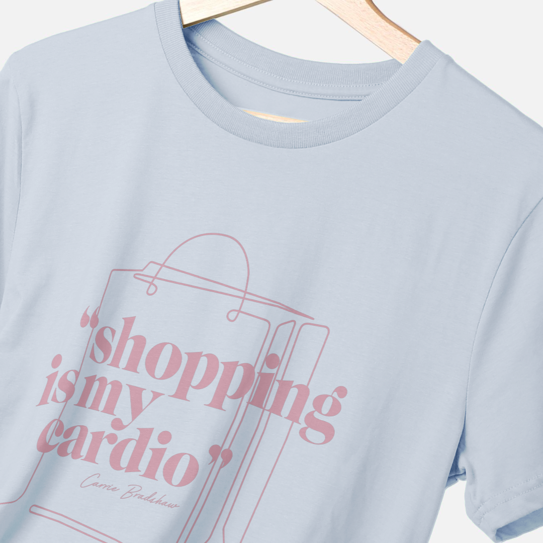 Sex and the City “Shopping Is My Cardio” Sky Blue T-Shirt