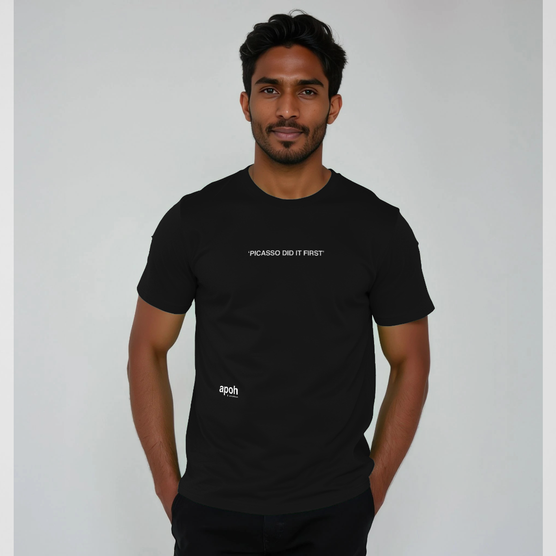 Our OFFICIAL APOH Picasso Did It First Slogan Black T-Shirt based on the popular art collections features a printed design on the front. This quality garment is manufactured officially under license by Park London on behalf of APOH.