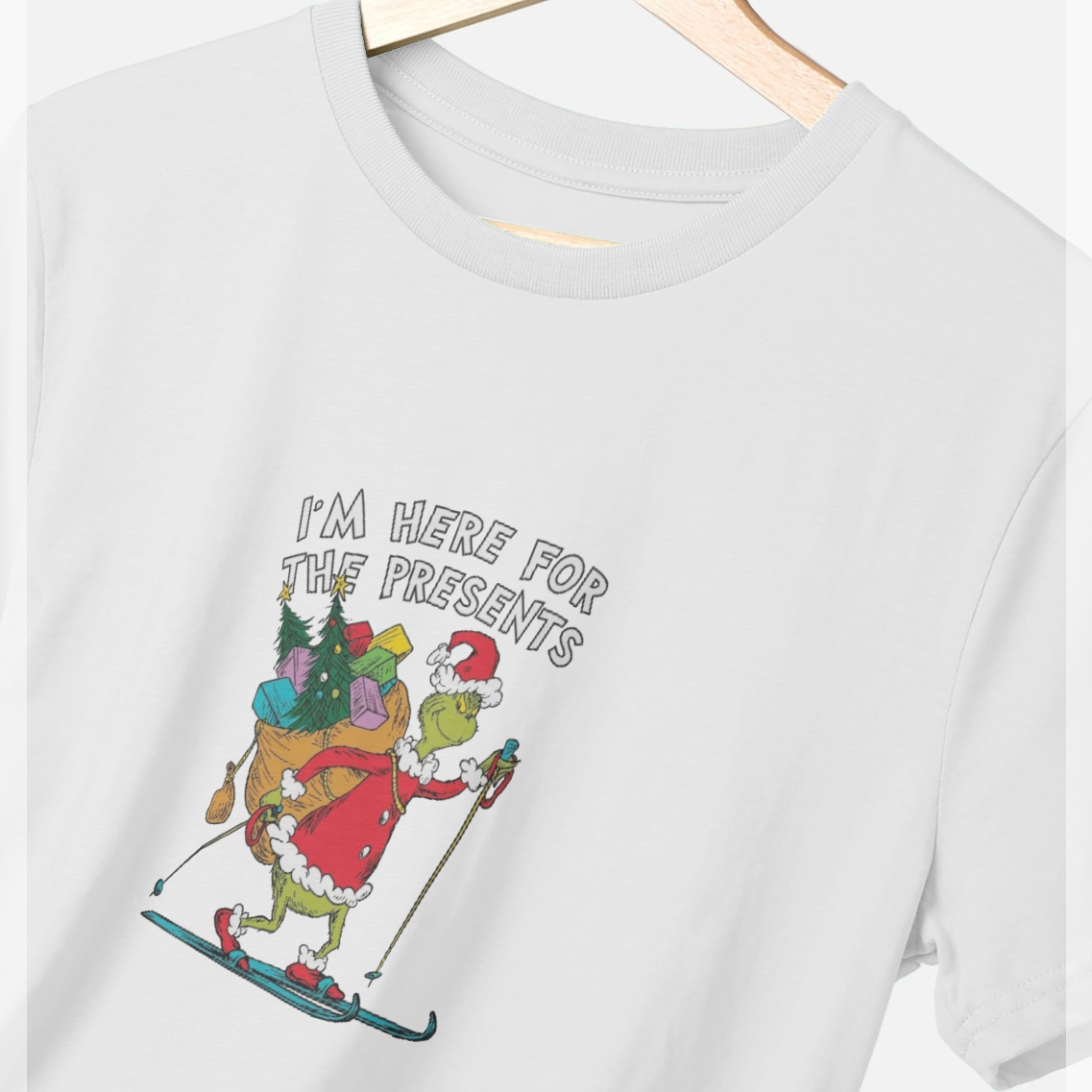 Our OFFICIAL The Grinch Here For The Presents Graphic White T-Shirt based on the popular film features a printed design on the front. This quality garment is manufactured officially under license by Park London on behalf of The Grinch.