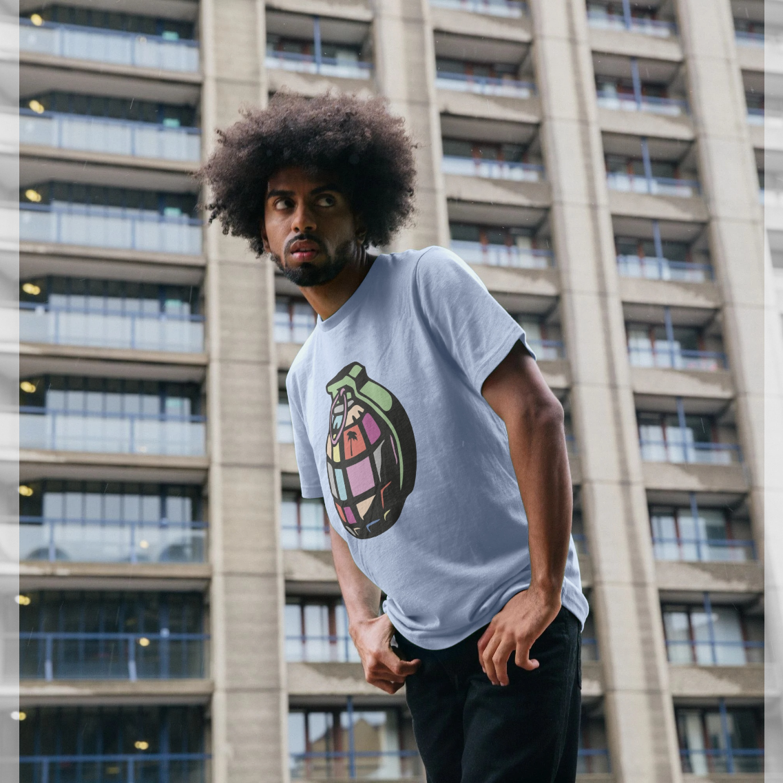 Our OFFICIAL Trainer Spotter Block Grenade Light Blue T-Shirt based on the popular Trainer Spotter brand features a printed design on the front. This quality garment is manufactured officially under license by Park London on behalf of Trainer Spotter.