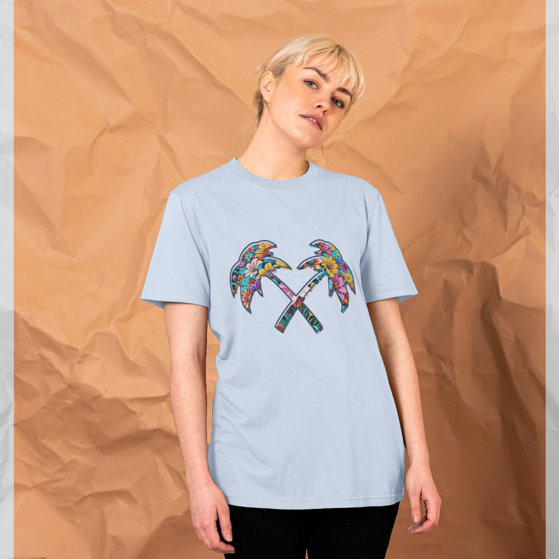Trainerspotter Cross Palm Flowers Light Blue T-Shirt