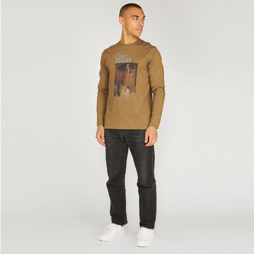 Created to mark the Chinese Year of the Horse, this collection draws inspiration from classic equestrian artwork. The Degas At The Stables 'Year of The Horse' Graphic Brown Longsleeve features a horse-themed design inspired by Degas’ stable scenes, set on a warm brown base for a relaxed and versatile look.
